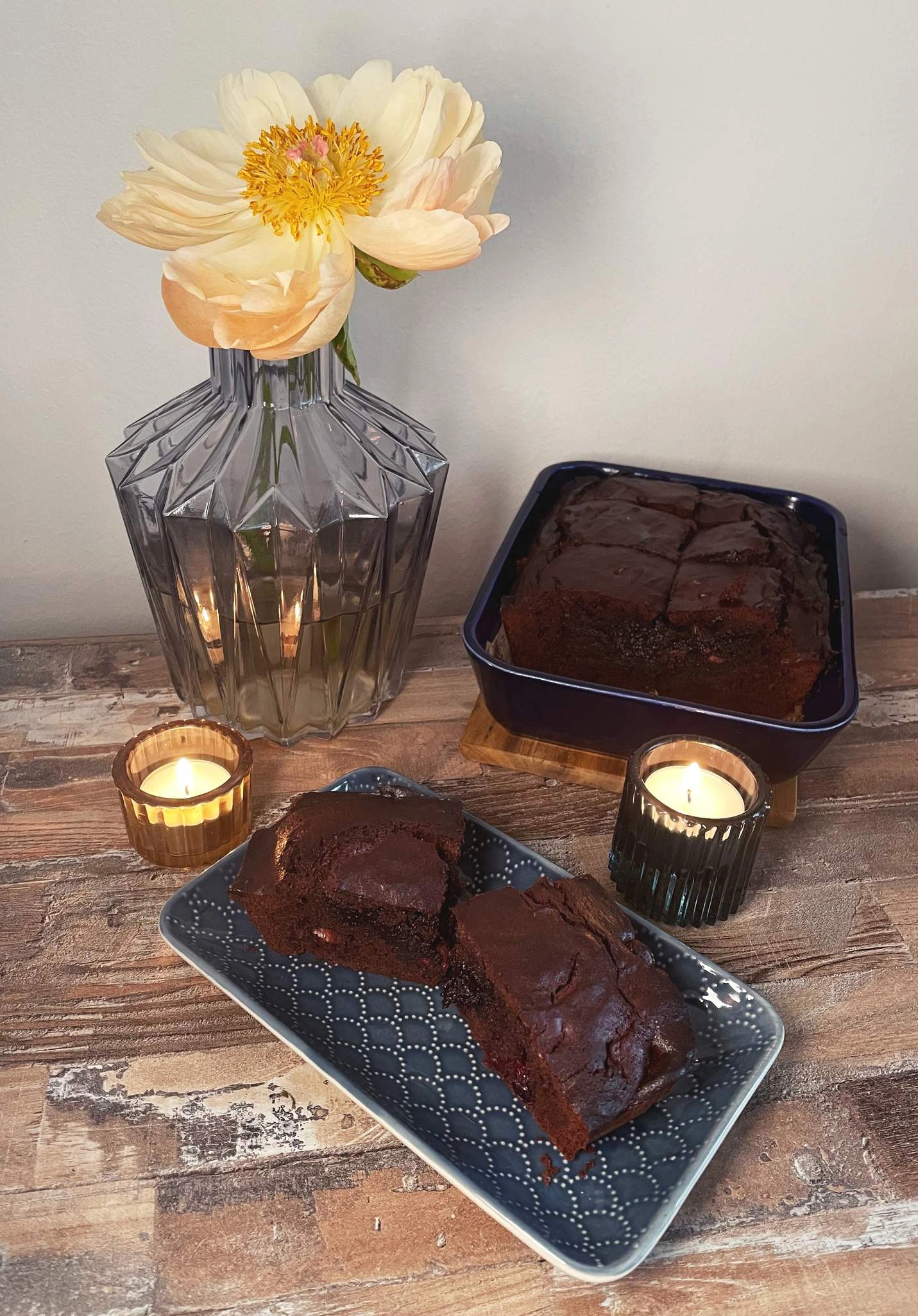 Chocolate brownies with dried cranberries