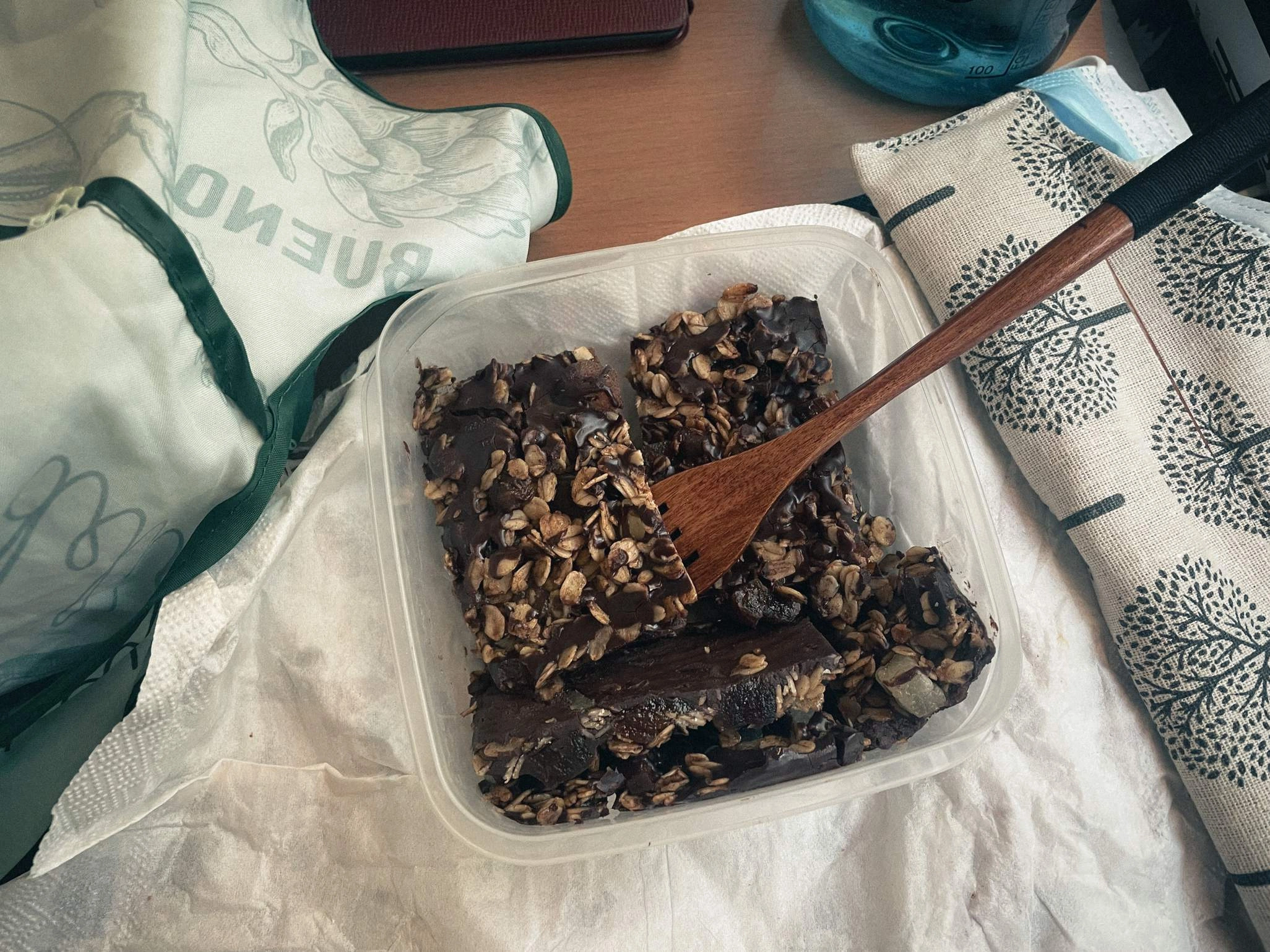 This isĀ aĀ perfect sweet snack forĀ aĀ train journey, based onĀ our favorite Morning crunch granola. YouāllĀ probably get all messy, soĀ donātĀ forget toĀ take aĀ spoon orĀ aĀ fork, but itāsĀ well worth it. TheĀ taste isĀ amazing, andĀ not too sweet. Keep anĀ eye onĀ itāÆāāitāsĀ soĀ much better than theĀ bag ofĀ chips orĀ aĀ store-bought chocolate bar your neighbors may have, soĀ they may try toĀ steal theĀ bars fromĀ you.