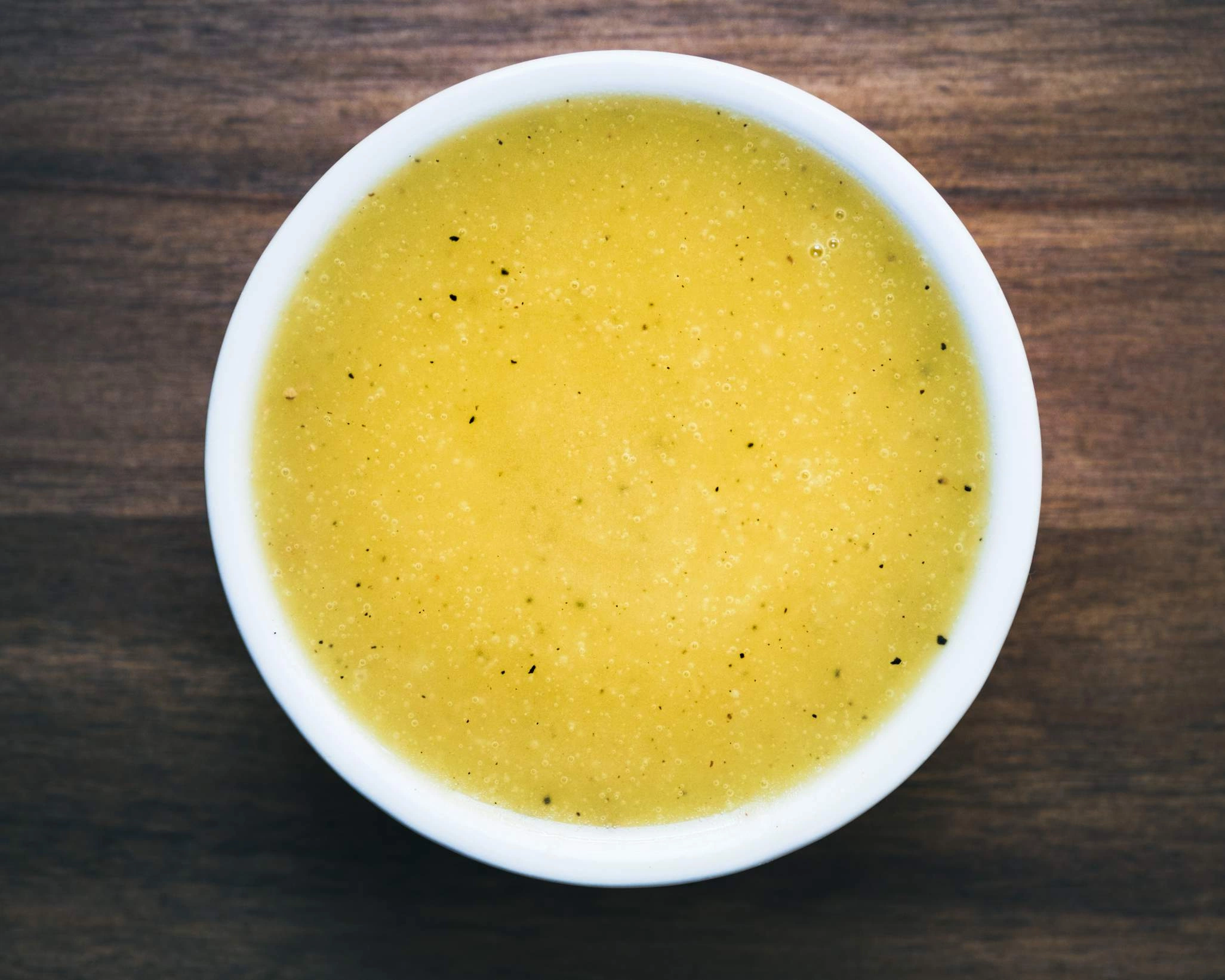 - Combine olive oil, lime juice, mustard, honey, and pressed garlic, then whisk to blend. Add more olive oil to achieve desired consistency (liquid but not too watery).