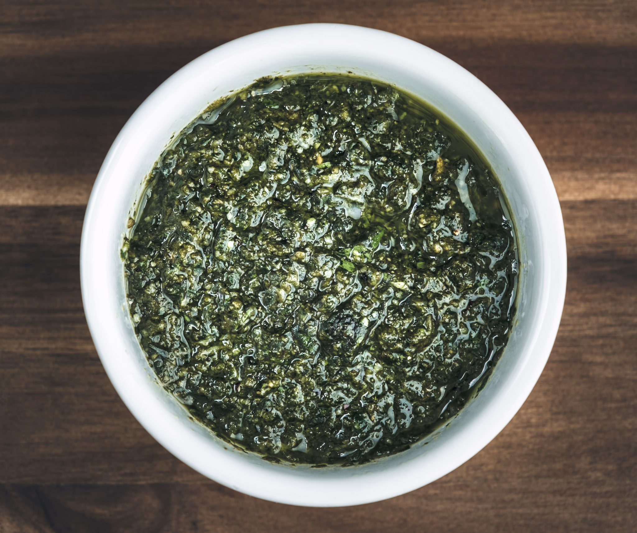 - Mix basil, parsley, garlic, sunflower seeds, Parmesan cheese, olive oil using a blender or a food processor until all bigger chunks are chopped. It shouldn’t be too smooth and creamy either: it’s nice when pesto has a rustic texture.